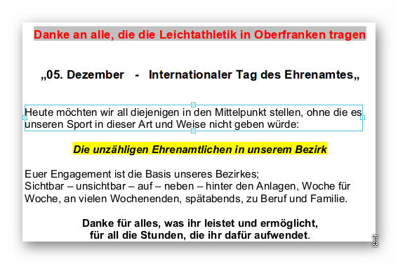 Heute ist 05. Dezember = Tag des Ehrenamtes Ein herzliches Dankeschön an alle Mitwirkenden. ![]() --> hier weiterlesen <-- Vielen Dank an den Verfasser dieses Textes - Gerhard Sextl von der LG Fichtelgebirge, der beim Ehrenabend BayernSTAR vom BLV als bester Kampfrichter des Jahres 2025 geehrt wurde ! Ebenso erfuhren diese Ehrung vom BLV Helena Weiß von der LG Bamberg als beste Nachwuchstrainerin des Jahres 2025 und Martin Ständner vom UAC Kulmbach als bester Trainer des Jahres 2025 ! Herzlichen Glückwunsch !! |